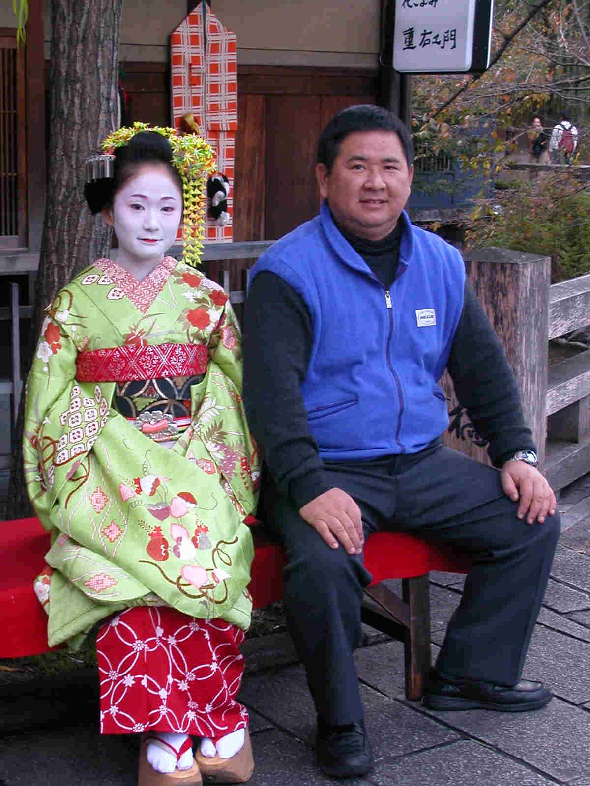 11月の飛び石連休平日の月曜日を社長の権限で休みにし連休としました。紅葉の盛りの京都に着いたのが朝10時頃、舞妓姿の娘と祇園の町を歩いて写真撮影、親子で旦那と舞妓のカットも撮ったが、地方から来られた観光客のカメラを撮る方の多かったこと、「偽者ですみませんでした」