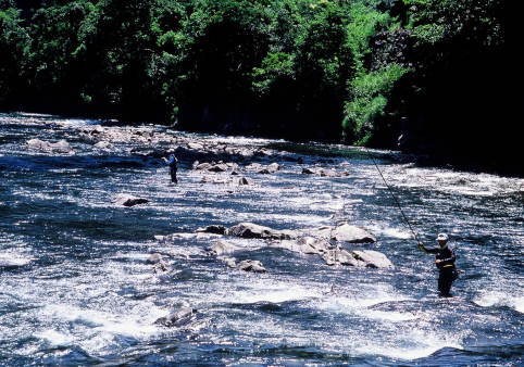 2002年 温浴治療を施した放流鮎は、どうにか元気でした。治療も何もしない河川は、やはり解禁前には、ほとんど消滅してしまったようです。知恵と力のある河川は、自前の鮎、人口産の鮎に力を注いでいます。追いの良い鮎は、釣り人の夢です。