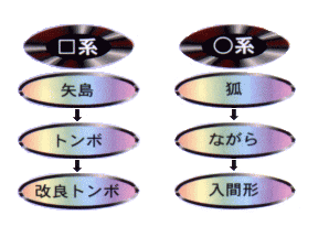 トモバリの型を大別すると、狐系・矢島系のこの2つに分かれます。