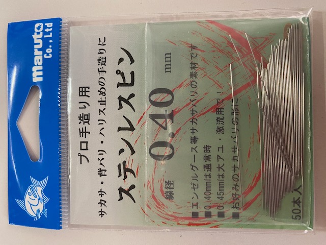 2023年1月からパッケージを変更しました ・エンゼルグース等サカサバリの素材です ・0.40mmは通常時 ・0.45mmは、大アユ・激流用で! ・お好みのサカサバリの形に 線径0.40mm 長さ約45mm50本入り 700円(税抜)大アユサイズのサカサバリに向いています。線径0.45mm 長さ45mm50本入り 700円(税抜)